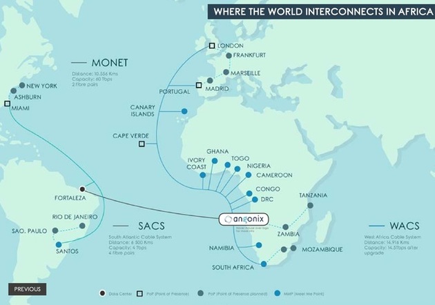 The company owns SACS - South Atlantic Cable System a direct subsea route from Brazil to Africa (63ms), MONET (Brasil to USA connection) and manage the Angolan participation in WACS, West Africa Cable System, realeased in 2012.