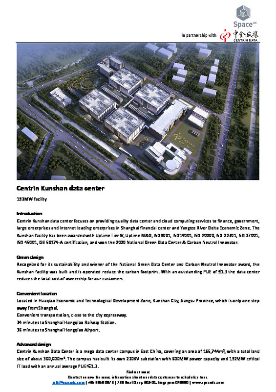The facility is part of Centrin Data System's Kunshan Mega Data Center Campus in East China.