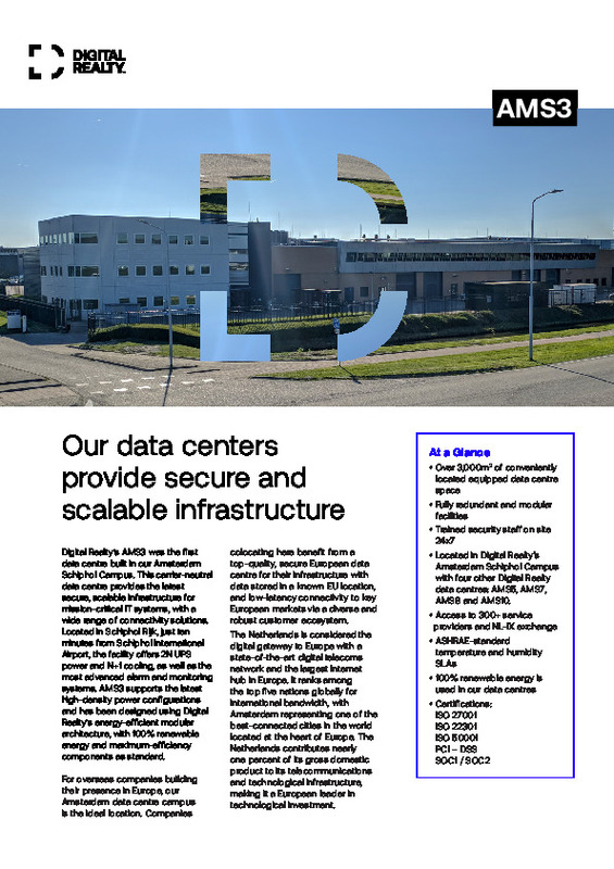 Digiltal Realty's Amstel Business Park data centre in Amsterdam provides 2,700m² of floor space.