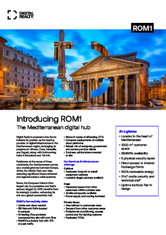 Digital Realty has broken ground on its first data center in Rome, Italy. Work on the ROM1 facility has begun and is scheduled for completion in 2027.