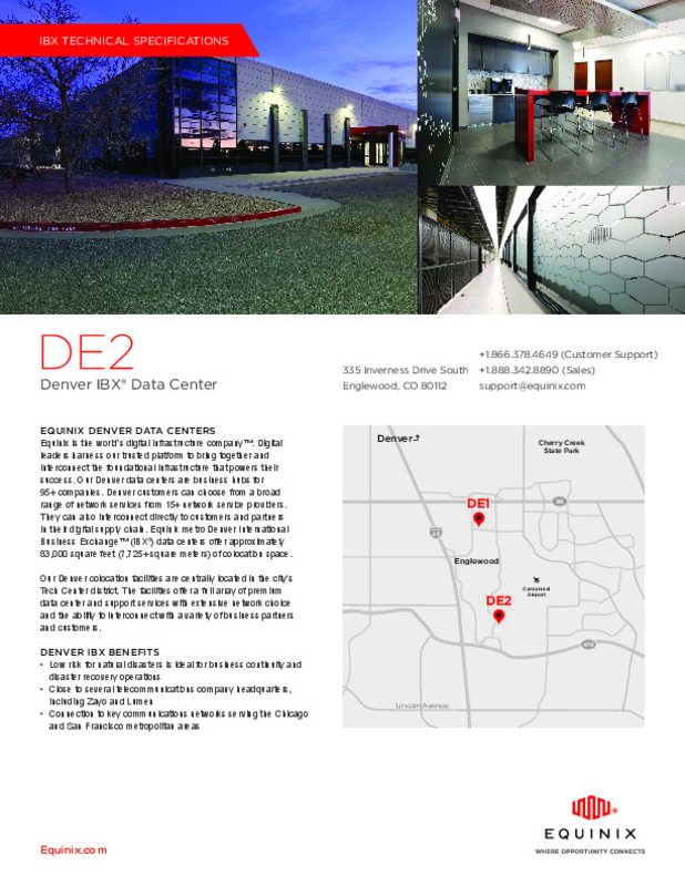 Equinix acquired DE2 in Englewood as well as 28 other datacenters from Verizon in May 2017. It was formerly named Verizon DEN1.