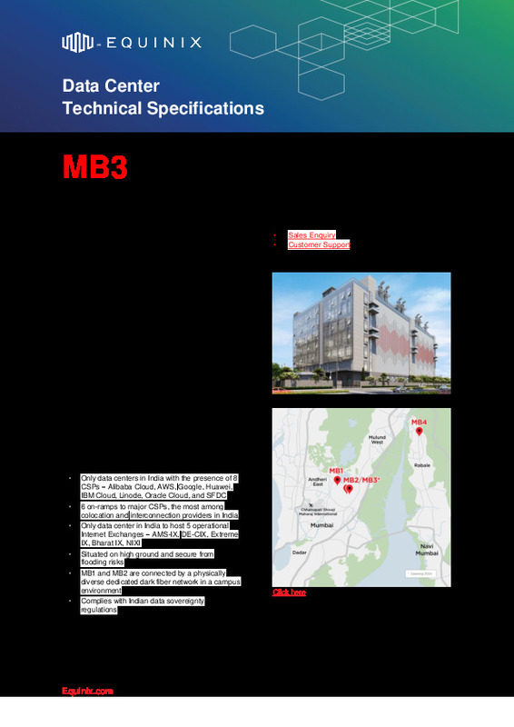 The MB3 data center, located in Chandivali, Andheri East in Mumbai, is a five-story facility launched in April 2026 as part of Equinix’s growing IBX campus in the city. Built on approximately five acres, the site delivers an initial capacity of around 1,370 cabinets, with plans to scale to approximately 5,475 cabinets at full build-out. Designed to support high-density, AI, and hybrid multicloud workloads, the facility includes liquid cooling capabilities and integrates with Equinix’s existing Mumbai sites through high-capacity interconnection, strengthening its role as a key carrier-neutral hub within India’s digital infrastructure market