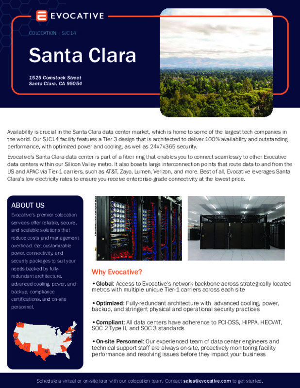 Evocative's Santa Clara Data Center (SJC3), located at 3080 Raymond St, Santa Clara, CA , was constructed in 1980. Spanning an impressive 15000 square feet, this colocation site offers ample space to accommodate various data center operations and infrastructure requirements.