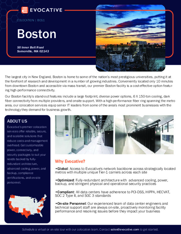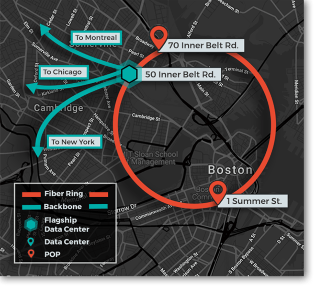 Located less than one mile from I-93 on the Boston/Somerville line and at the intersection of multiple redundant fiber networks, ColoSpace Somerville offers a combination of convenience to downtown Boston and Cambridge
