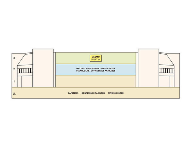 The building is a eight story (7 stories with a basement) multi-tenant data center.