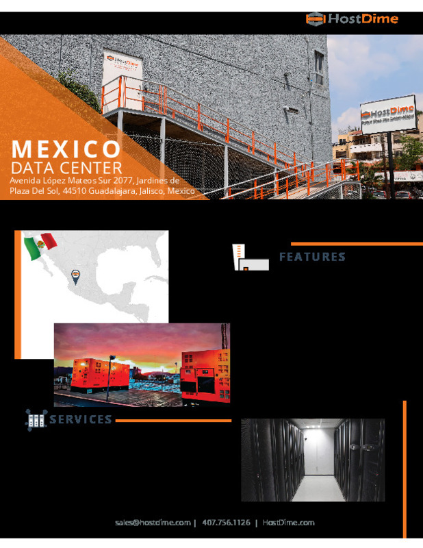 HostDime's Tier III data center in Guadalajara, Mexico, offers 20,000 square feet of space for your IT infrastructure. The facility features powerful generators, robust UPS systems, state-of-the-art security, and advanced fire suppression systems.
