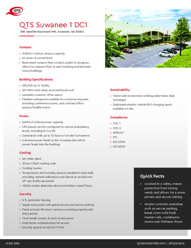 In 2023, QTS acquired its second data center to expand to a Suwanee campus.