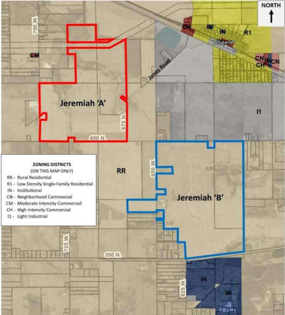 The development plan includes the construction of four buildings, each spanning 250,000 square feet and ranging from one to two stories in height.