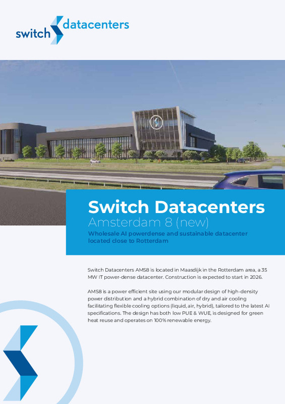 Switch Datacenters AMS8 is situated in Maasdijk, within the Rotterdam region. Construction is slated to begin in 2026.