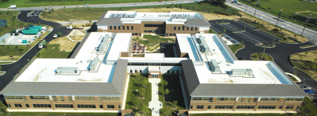 Built in 2001 and set on 5.1 acres, the three-story building spans 74,240 square feet (6,900 sqm).