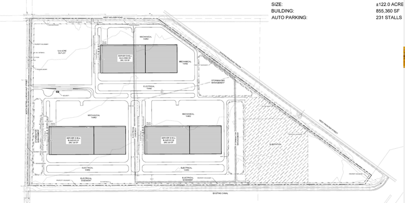 The 780-acre development, dubbed the Florence Tech Park, has been presented with varying plans. Initial conceptual documents show five data centers, two office buildings, and one general industrial building.